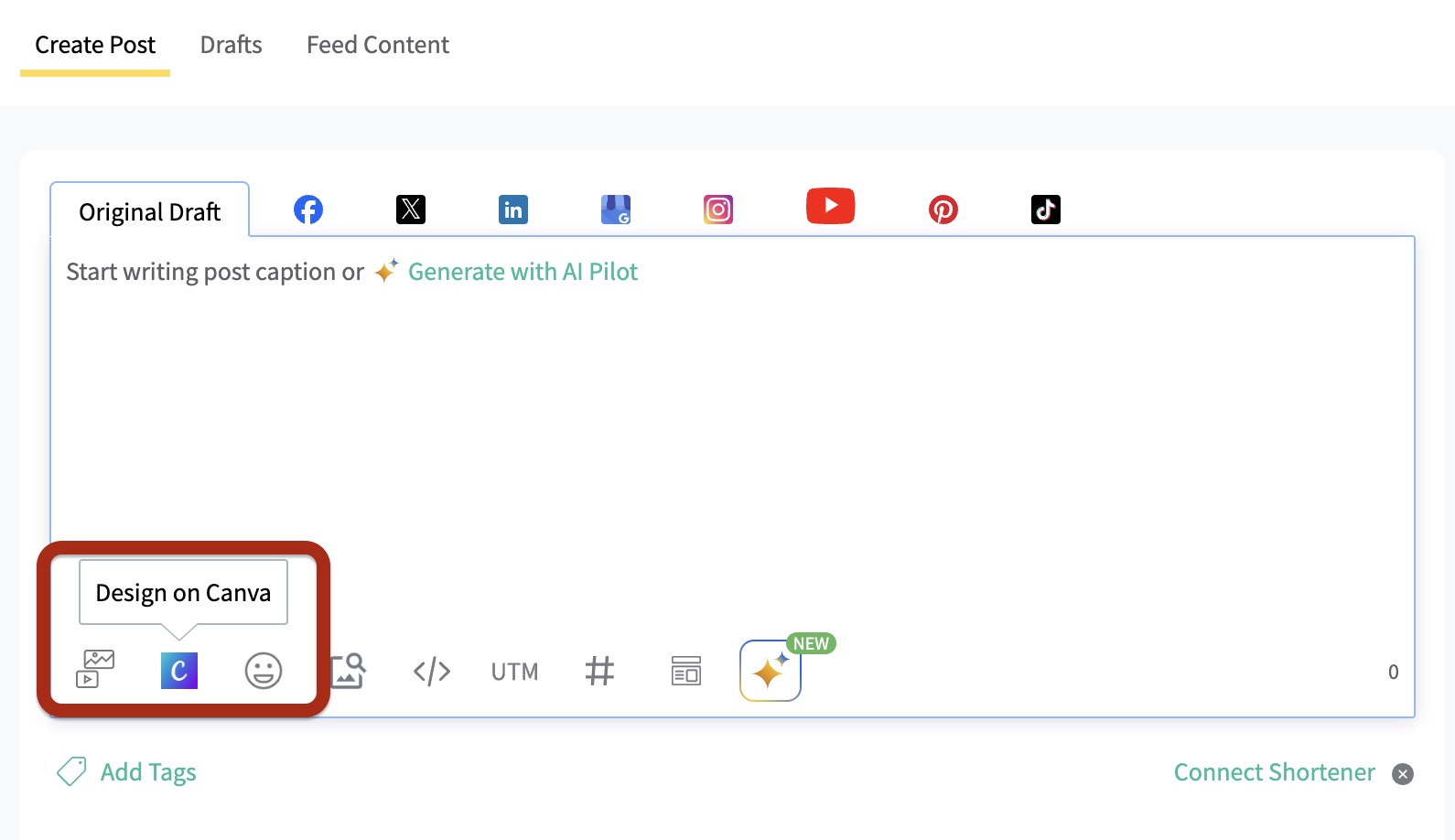 Look for the Canva icon in the post creation interface and click on it to launch Can